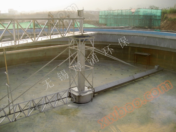 L'attrezzatura adotta una trasmissione centrale e un tipo di telaio verticale. Le acque reflue entrano nel serbatoio di distribuzione dell'acqua circostante e scorrono uniformemente nel serbatoio attraverso il foro di distribuzione dell'acqua inferiore. Sotto l'azione della gonna di blocco dell'acqua circostante, l'acqua scorre dal fondo del serbatoio al centro e il fango si deposita sul fondo del serbatoio dal proprio peso, formando una separazione del fango e dell'acqua. Il dispositivo di azionamento guida il telaio verticale centrale per ruotare e guida il braccio raschiatore e il tubo di aspirazione per ruotare. Sotto l'azione della pressione statica dell'acqua, il fango entra uniformemente nella porta di aspirazione disposta sul tubo di aspirazione e quindi viene scaricato fuori del serbatoio attraverso la valvola a manica del pozzo di scarico centrale. La dimensione dello scarico dei fanghi può essere controllata dal grado di sollevamento della valvola a manica. La scoria galleggiante sulla superficie dell'acqua viene spazzata fino al bordo della piscina dal dispositivo di scrematura e poi raschiata nella tramoggia delle scorie dal raschietto e scaricata fuori della piscina.